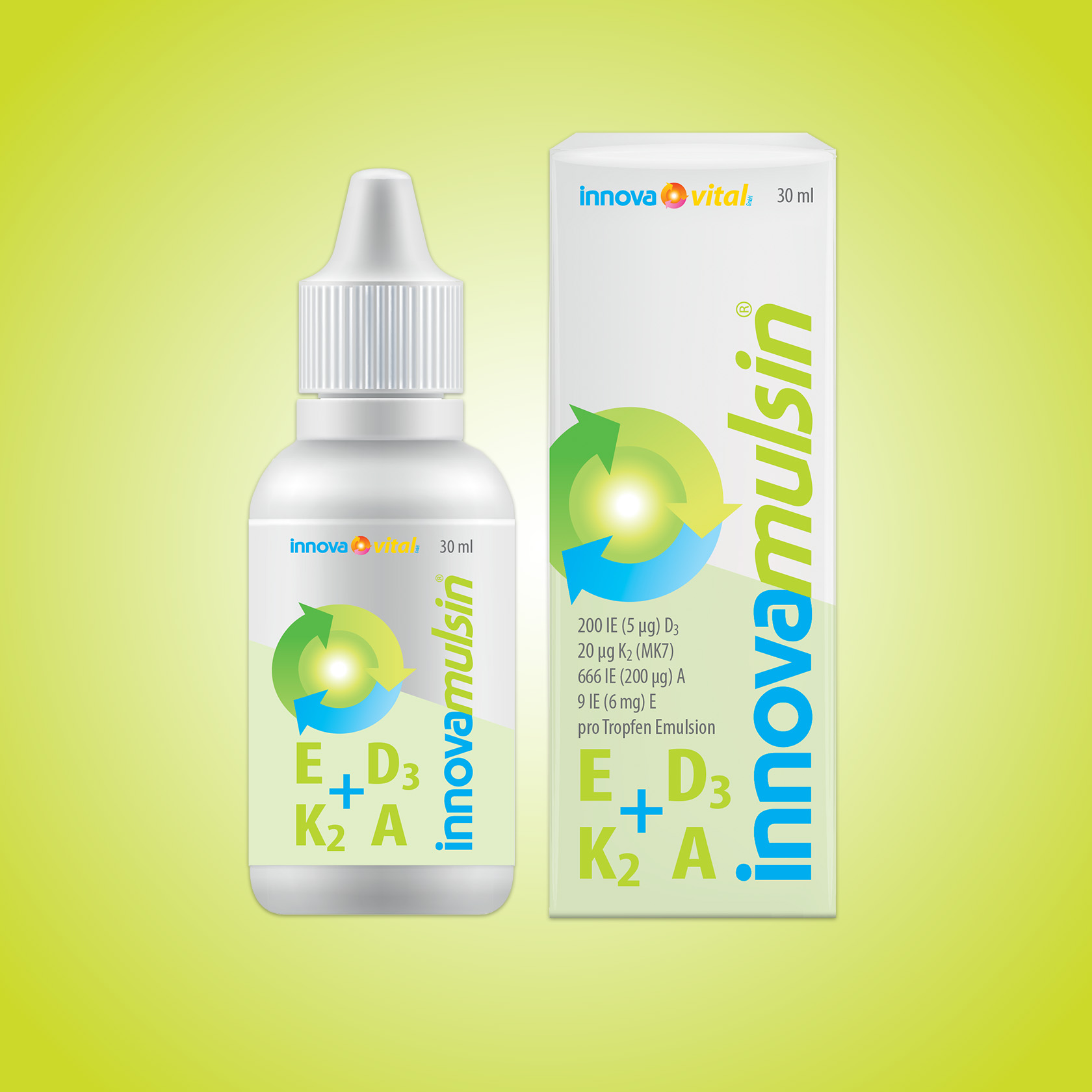 - innovamulsin® Vitamin E+D3+K2+A ist flüssig, es müssen keine Tabletten geschluckt werden, gut für die schnelle Darreichung zwischendurch.